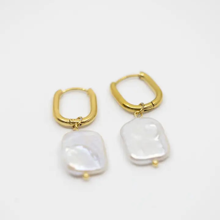 Dina Earrings - 18K Gold Hoop with Drop Freshwater Baroque Pearl